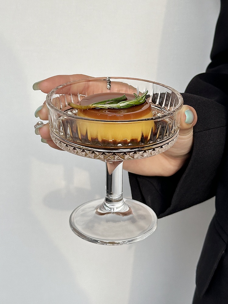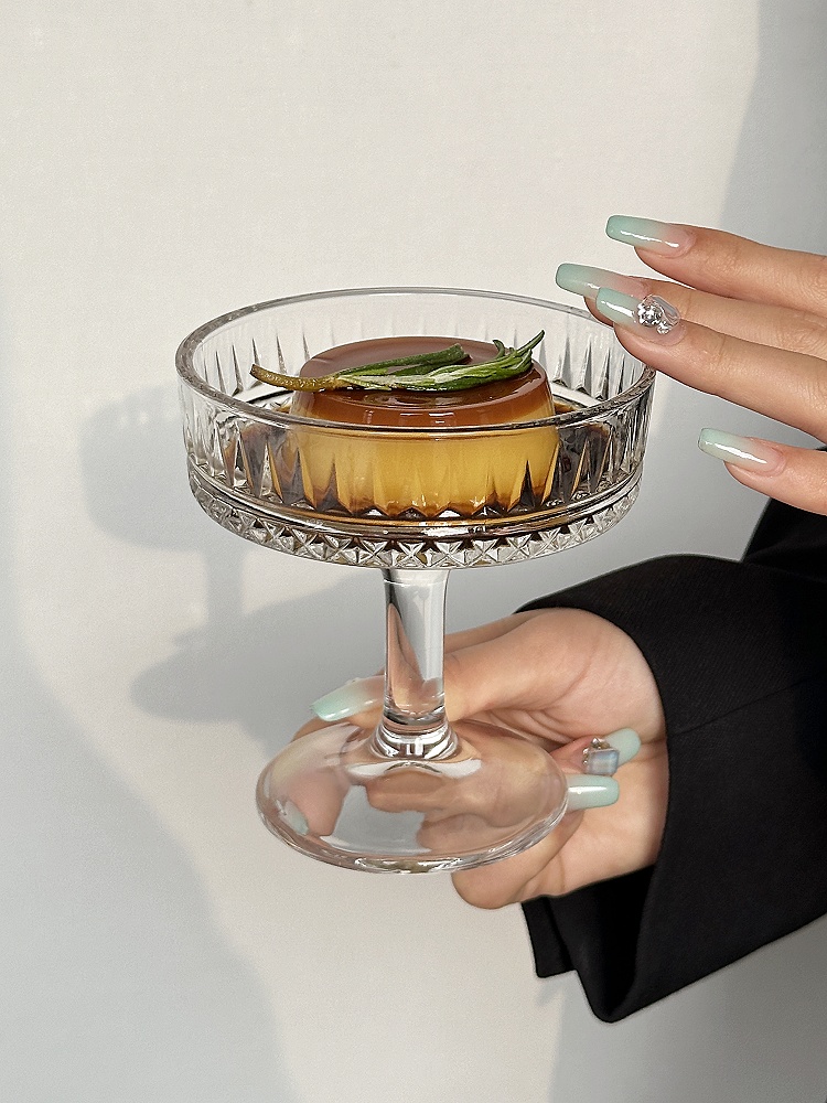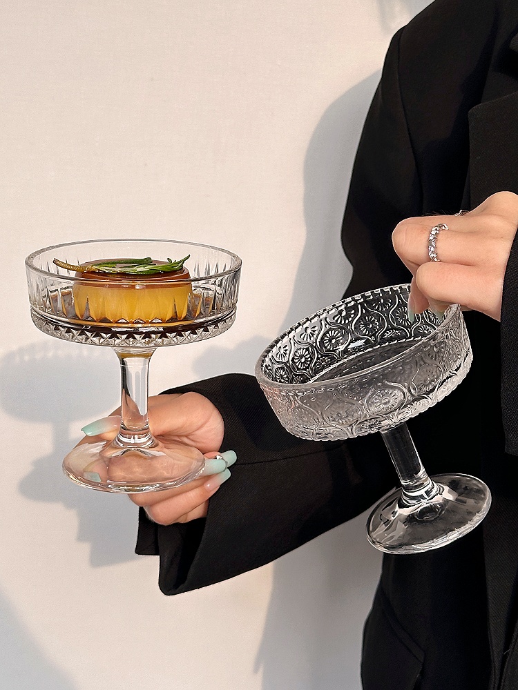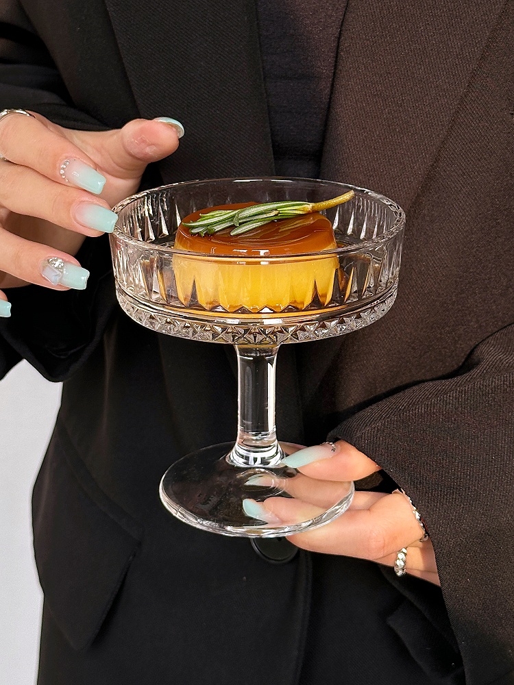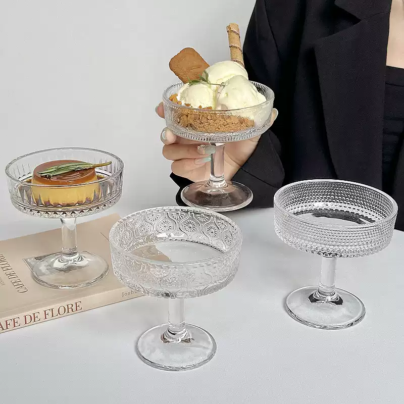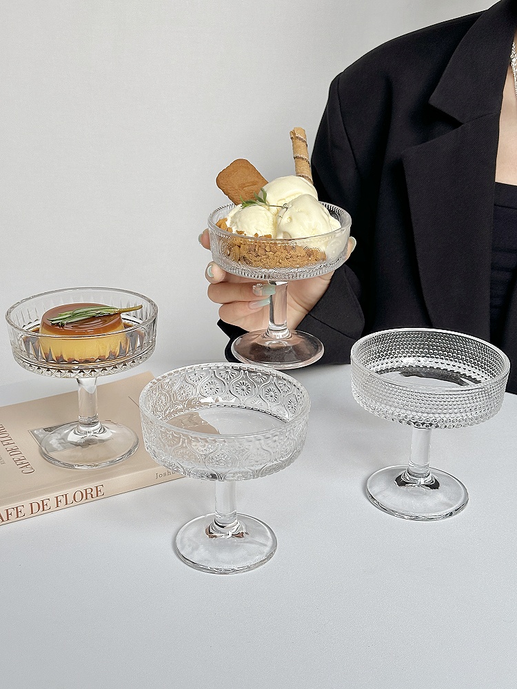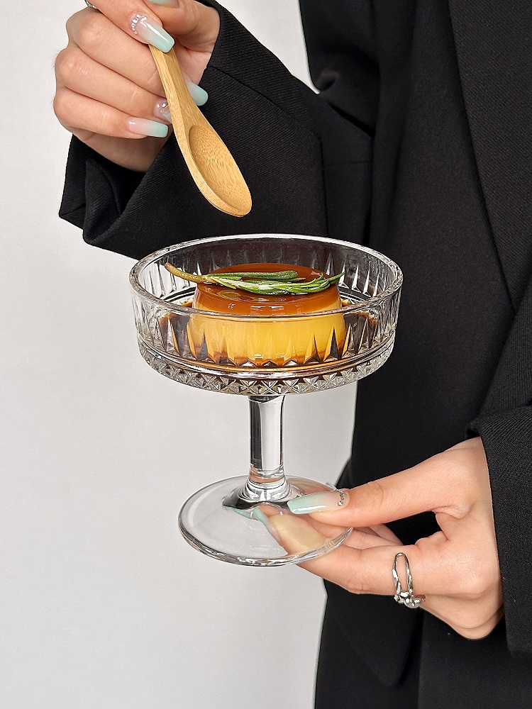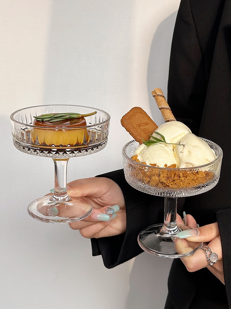 Aesthetic Instagram-famous glass dessert cups with stems for restaurants, suitable for pudding, snacks, ice cream, and yogurt.