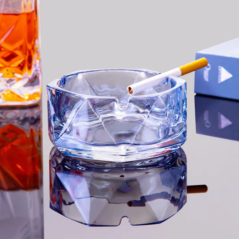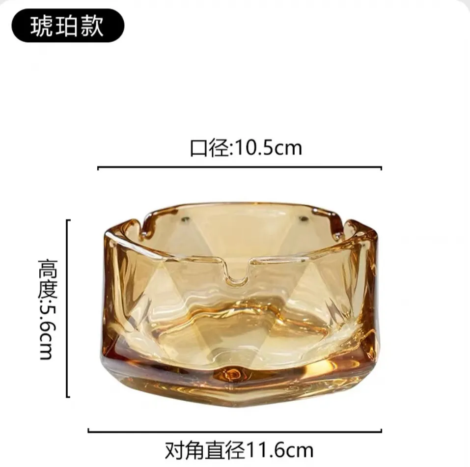 The transparent glass material gives it a high - end texture and strong transparency, making the ashtray look more delicate. We offer a variety of color options. The transparent one is suitable for those who like a simple style; the gold one can enhance the luxury of the place; and the amber one creates a warm and comfortable smoking environment.