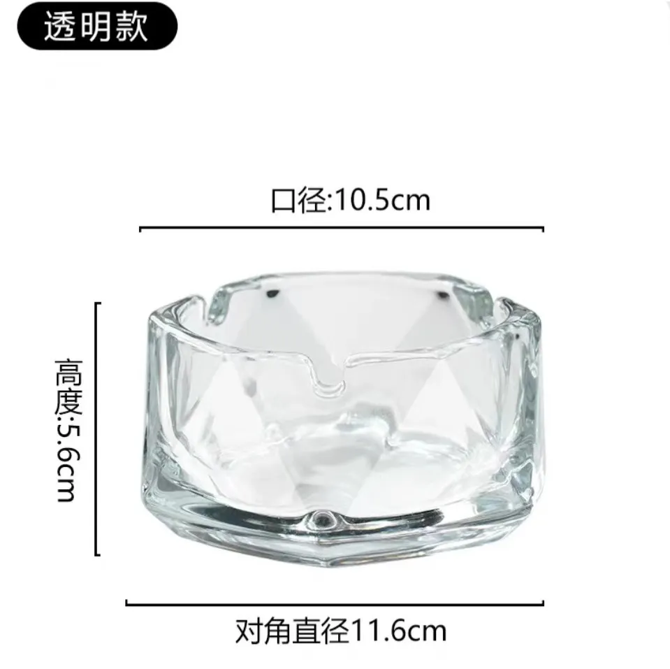 Creative Diamond - shaped Geometric Transparent Glass Ashtray - 24 pieces per box, suitable for home living rooms and hotel commercial use, customization available