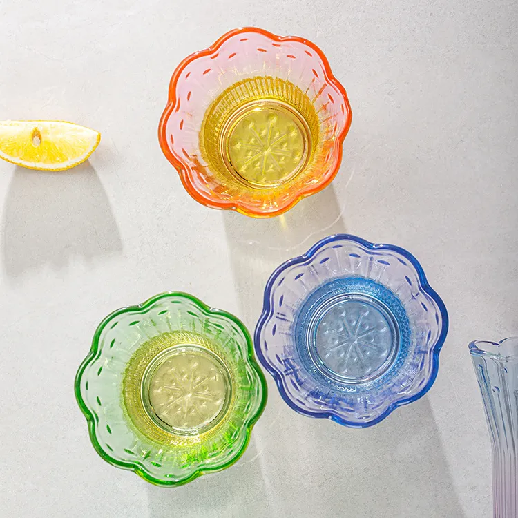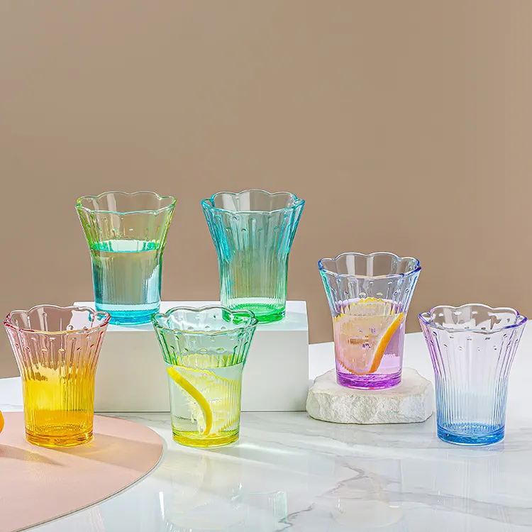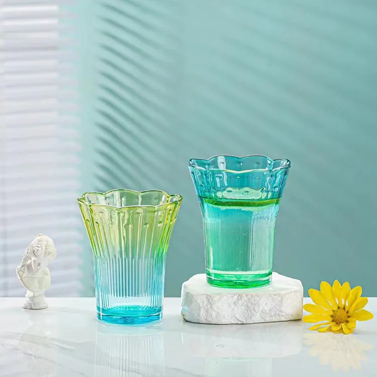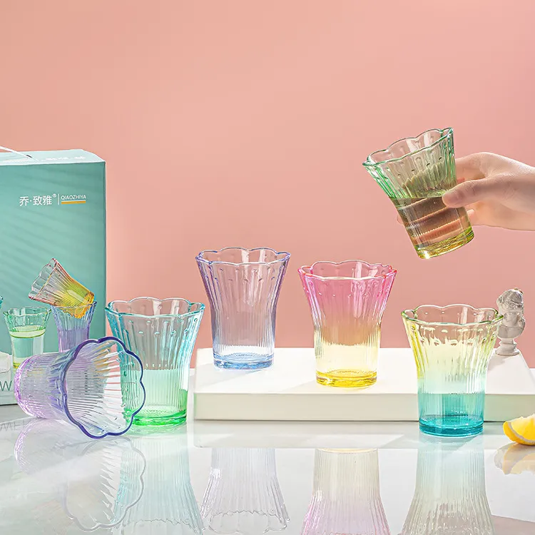 Ins-style Gradient Color Petal Glass Cups, Household Drinking Water Cups & Juice Cups, Creative Colorful Cup Set